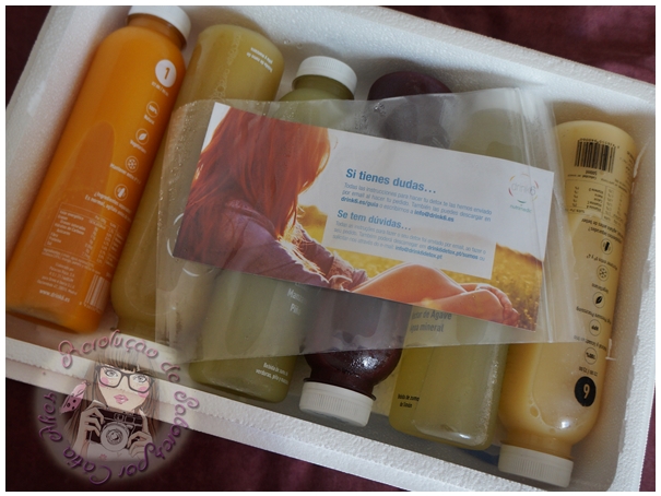 As embalagens, são de plástico, vem a lista de ingredientes, calorias, toda a descrição normal, os sumos são 100% naturais.